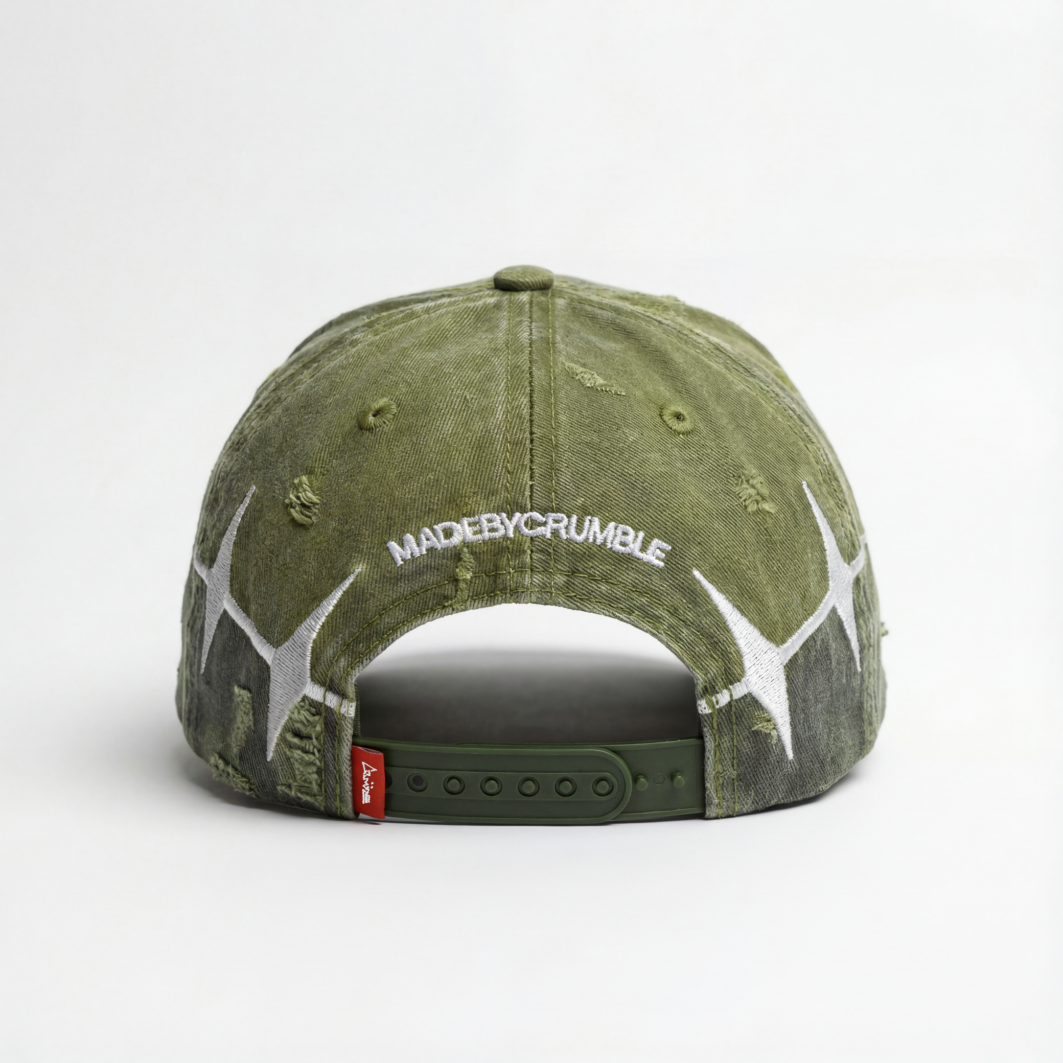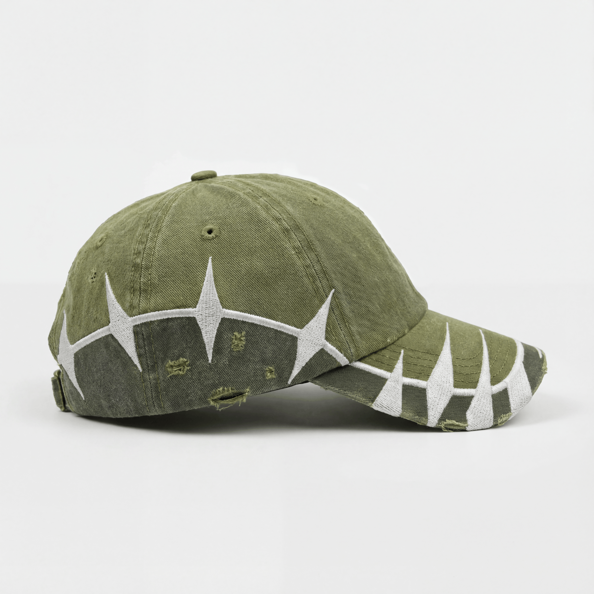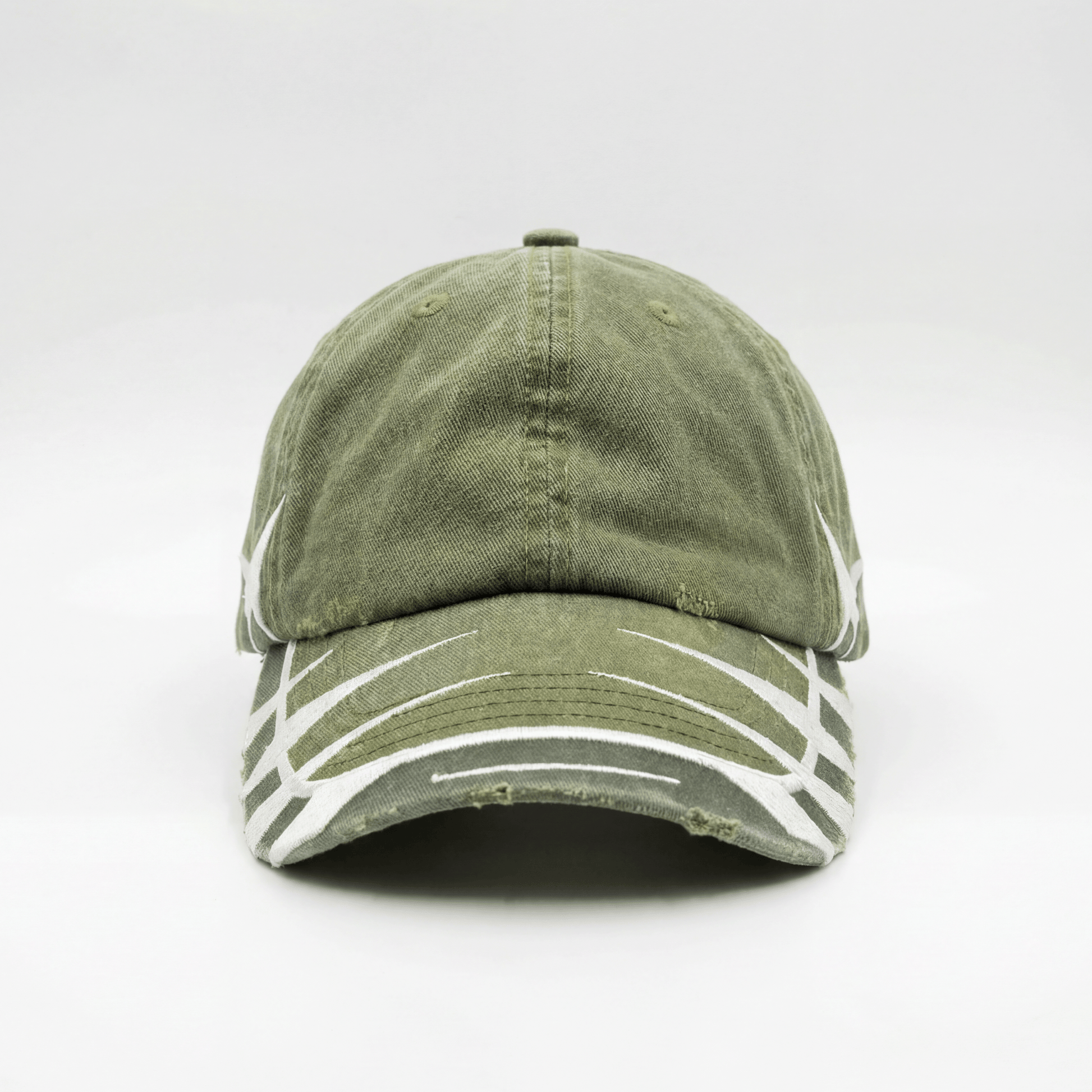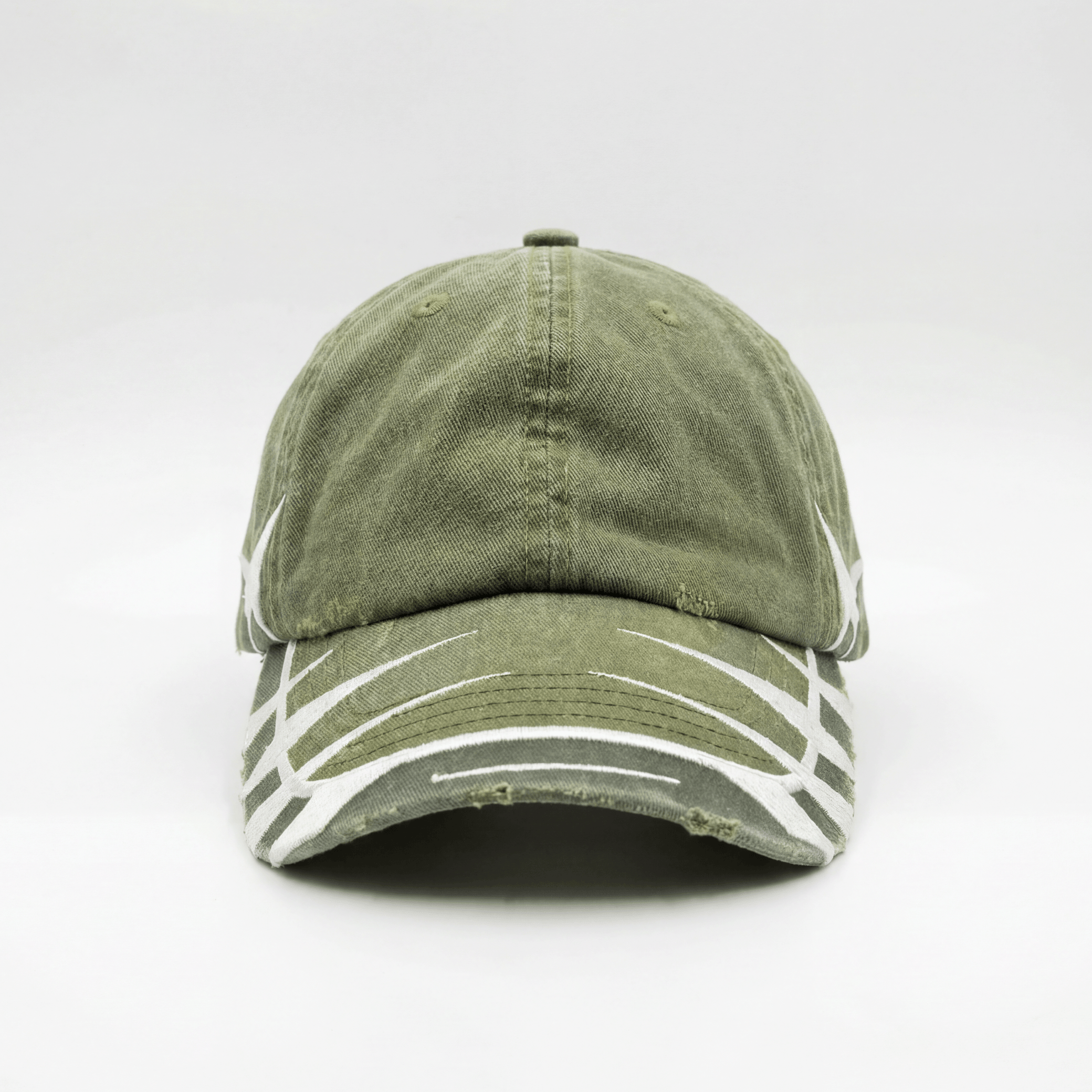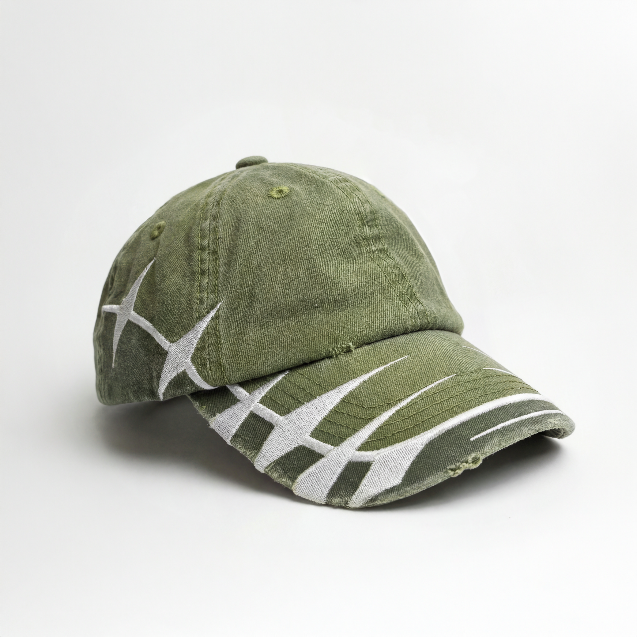 Two-tone washed cotton cap in green, divided by a continuous embroidered line.
